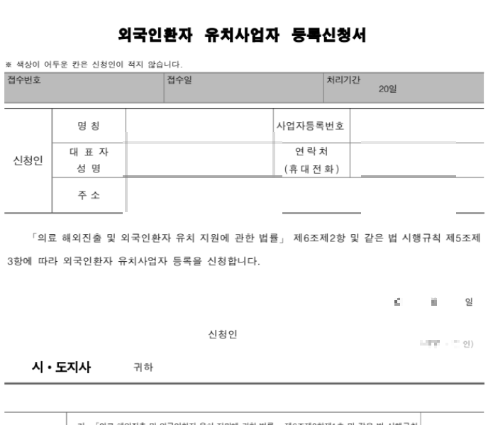 - 외국인환자 유치업 등록신청서