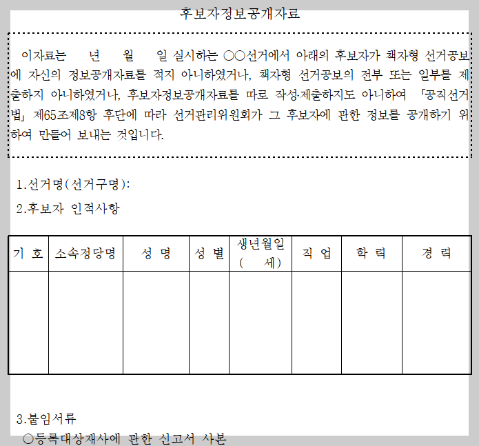 | 7 | 학력 및 경력 증빙자료 | 공보물에 게재 시 증빙 필수 |