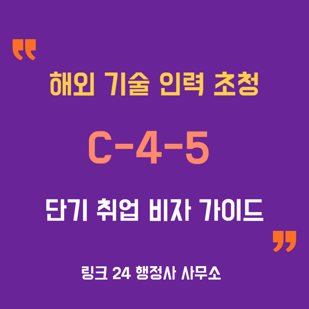 이번 포스팅에서는 이처럼 단기간 내에 기술 지원을 완료하고 본국으로 돌아가야 하는 상황에서 가장 적합한 비자인 C-4-5(단기취업) 비자에 대해 설명드리도록 하겠습니다.