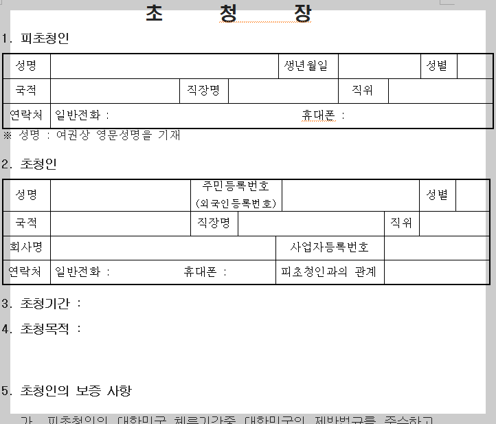 ※ 초청장에는 입국 예정일로부터 유효기간 등이 명시되어야 하며, 서류는 진실·정확해야 합니다.