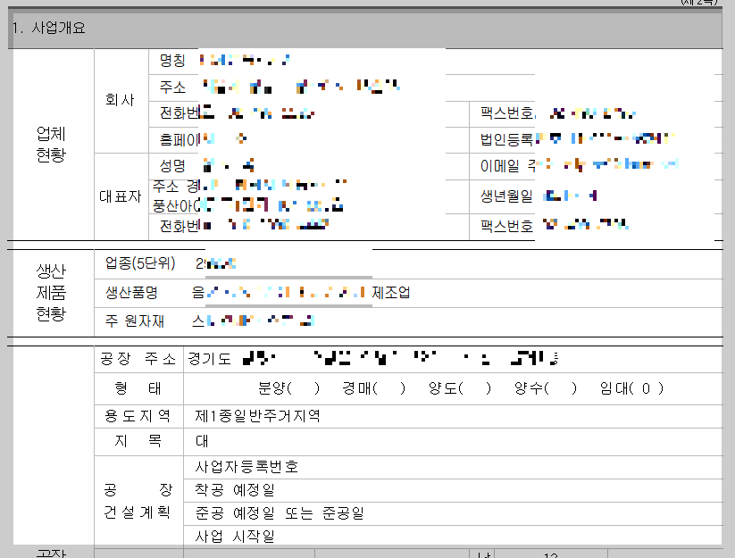 - 사업계획서 (생산공정 및 시설 명세 포함)