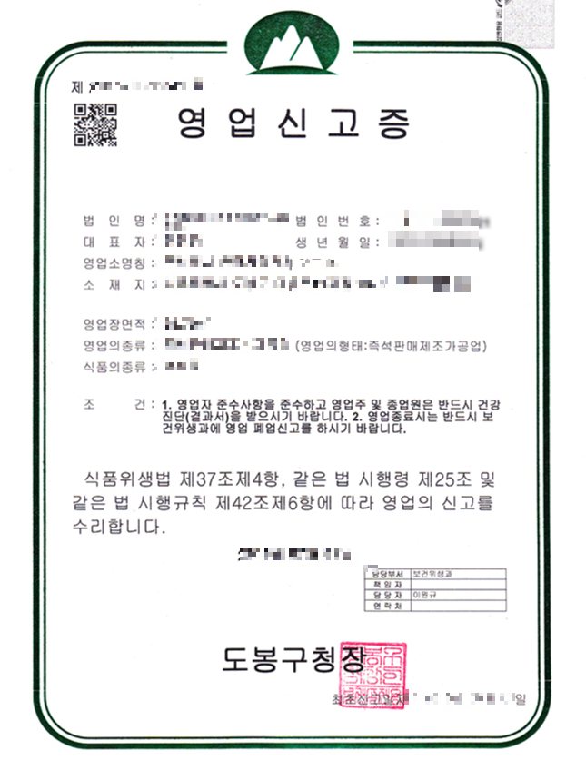 - 요건: 영업장 시설·조리기구·위생설비 기준 등을 갖추어야 하며, 영업신고 후 영업이 가능합니다.