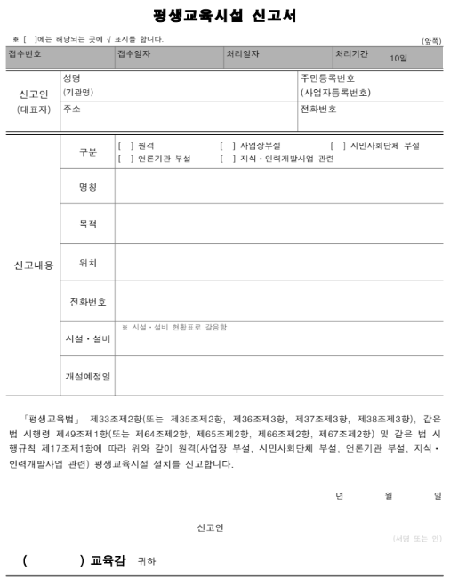 다만 평생교육시설로 신고하기 위해서는 1년 이상의 교육 실적이 필요하다는 점이 신규 진입자에게는 큰 장벽이 될 수 있습니다. 이는 교육의 질을 담보하고 무분별한 교육기관 설립을 방지하기 위한 제도적 장치로, 실제로는 학원 등 다른 형태로 먼저 운영하면서 실적을 쌓은 후 평생교육시설로 전환하는 경우가 많습니다.