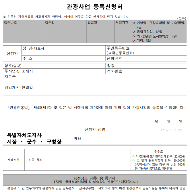 - 관광사업 등록신청서