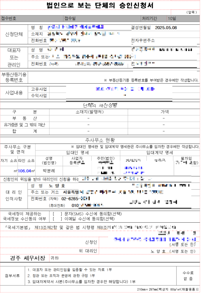 - 고유번호증 신청서: 관할 세무서에 제출할 서류입니다.